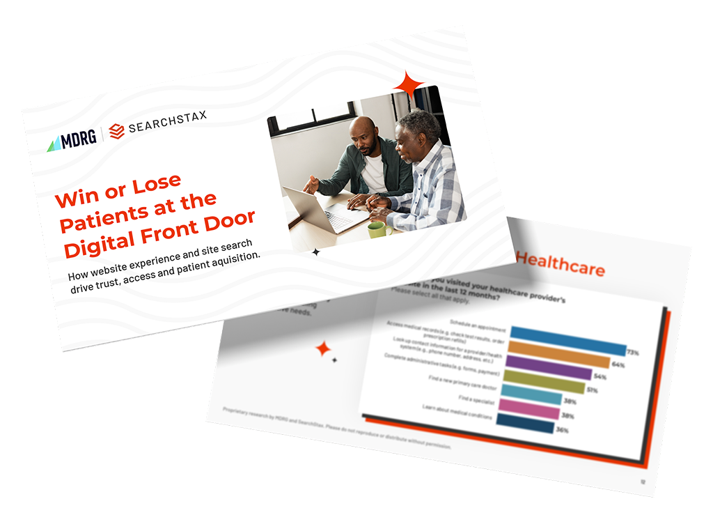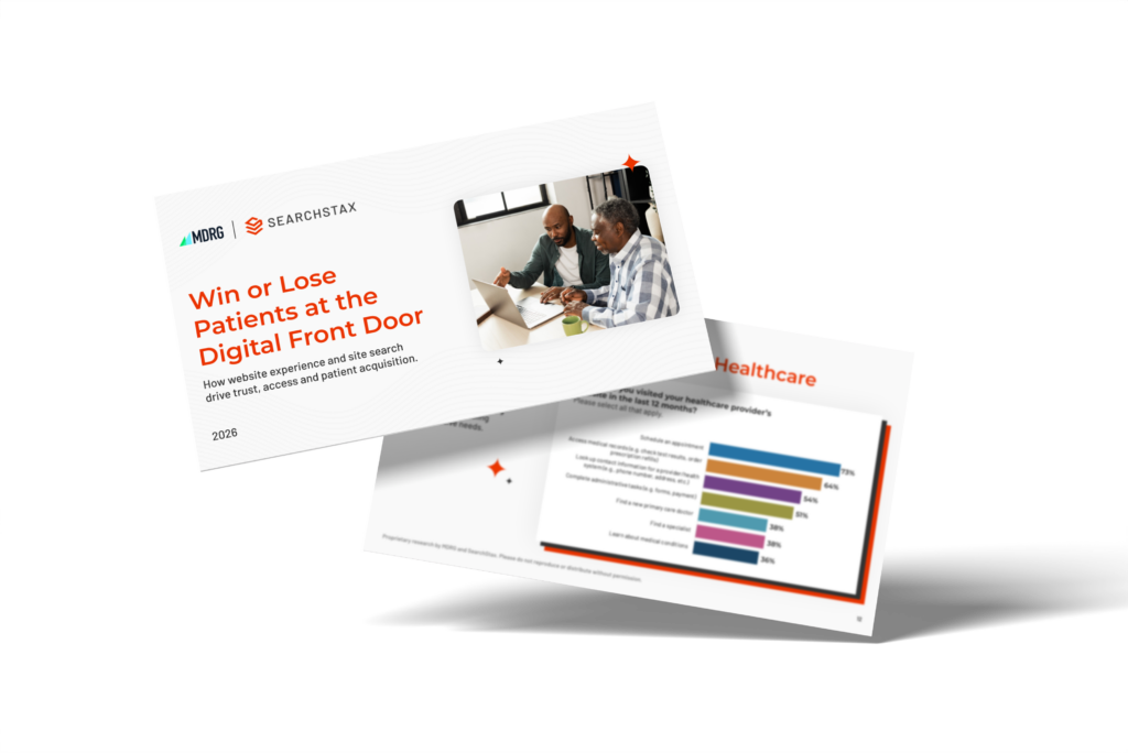 Download the full 2026 “Win or Lose Patients at the Digital Front Door” report from SearchStax and MDRG.