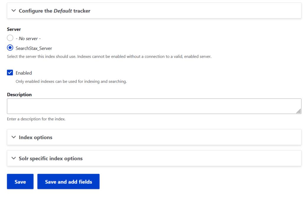 - Configure the Search API module Server.