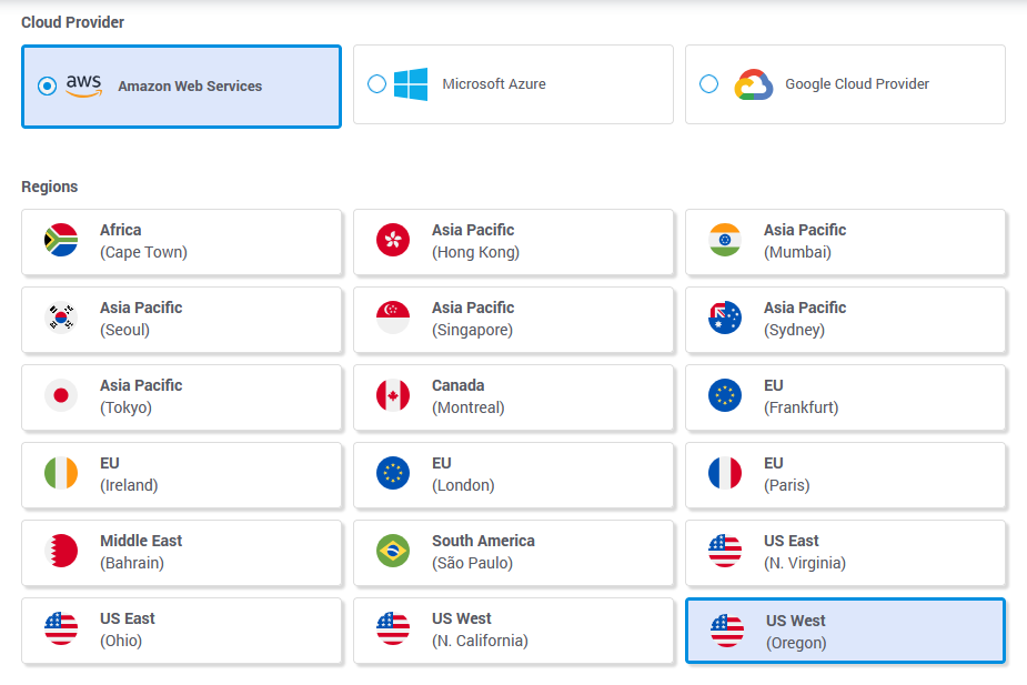 - Specify the Cloud Provider, Region, Plan Tier, and Solr version for your Deployment.