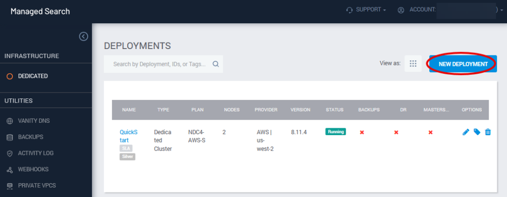 - From your Dedicated Infrastructure screen, click on New Deployment.