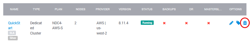 You can add nodes to clusters on the Deployment Details page, and, once added, you can click a link to delete the node again. (See the note on “Short-Lived Deployments,” above, for billing details.)