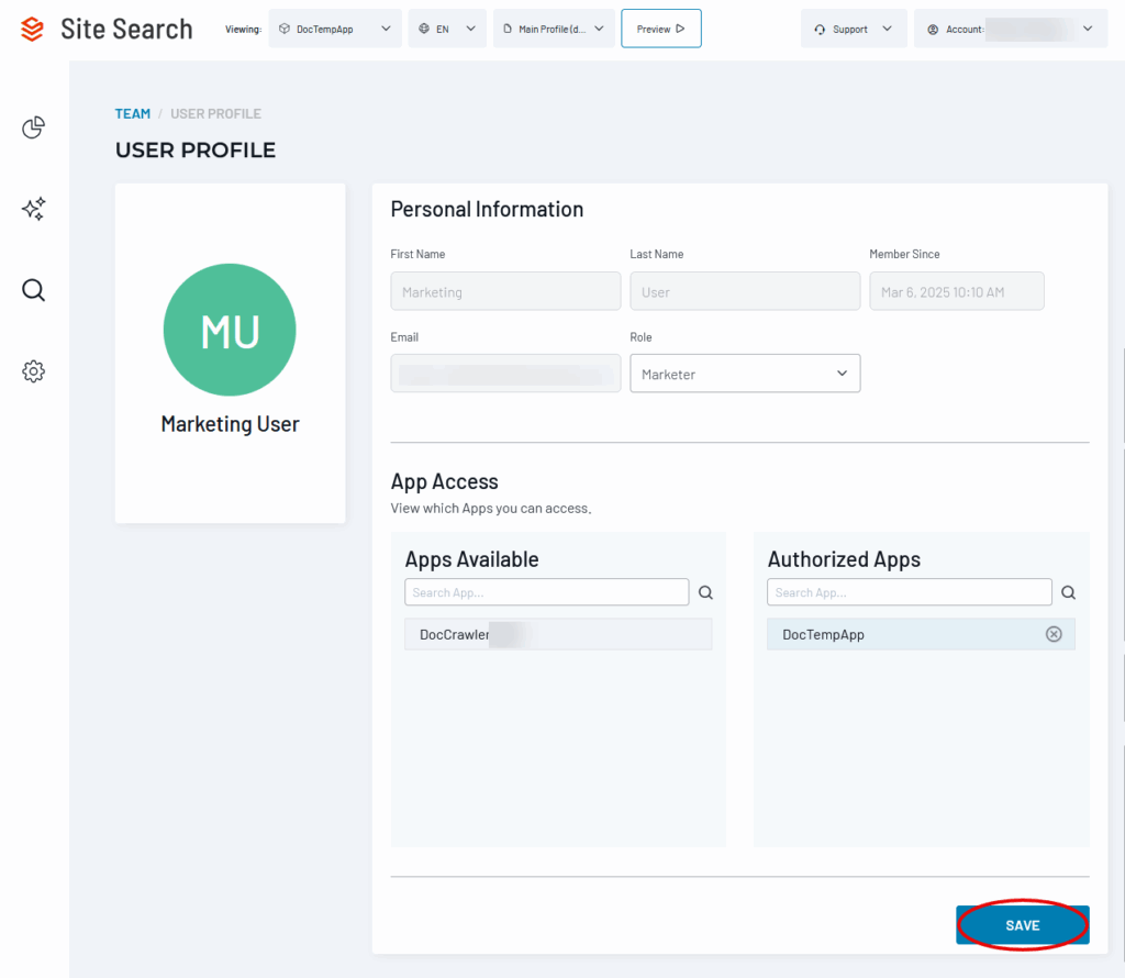 Team Member![]() | The Team Member is a read-only role for executive stakeholders who want to monitor search analytics. Cannot view any other parts of the Site Search UI. |